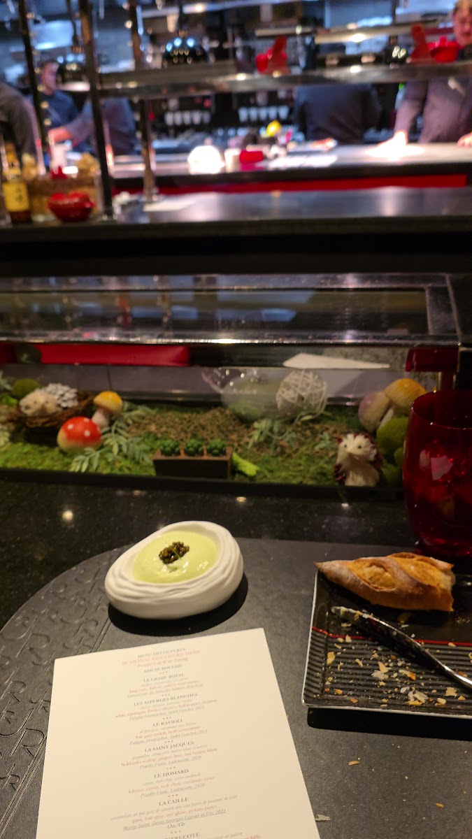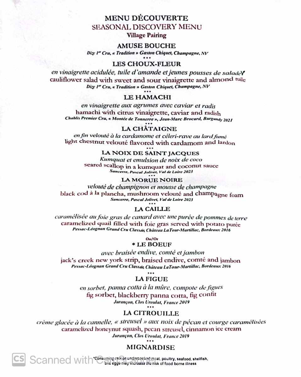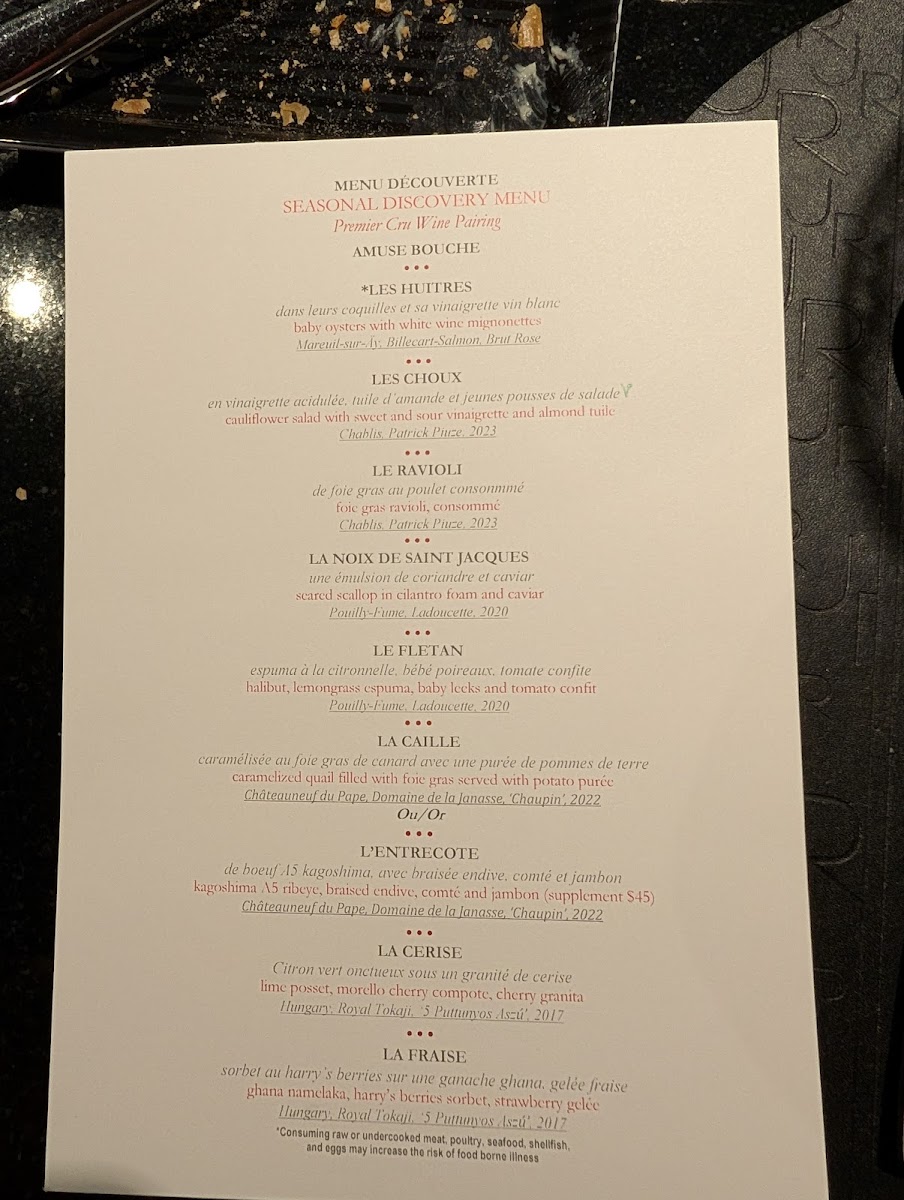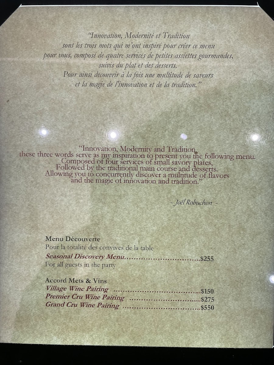 In addition to savory courses, the menu includes a selection of desserts like sorbet with blueberry compote, chocolate-based dishes, and traditional French-style birthday cake. The menu often features multi-course tasting menus suitable for extended dining experiences that showcase various culinary techniques.